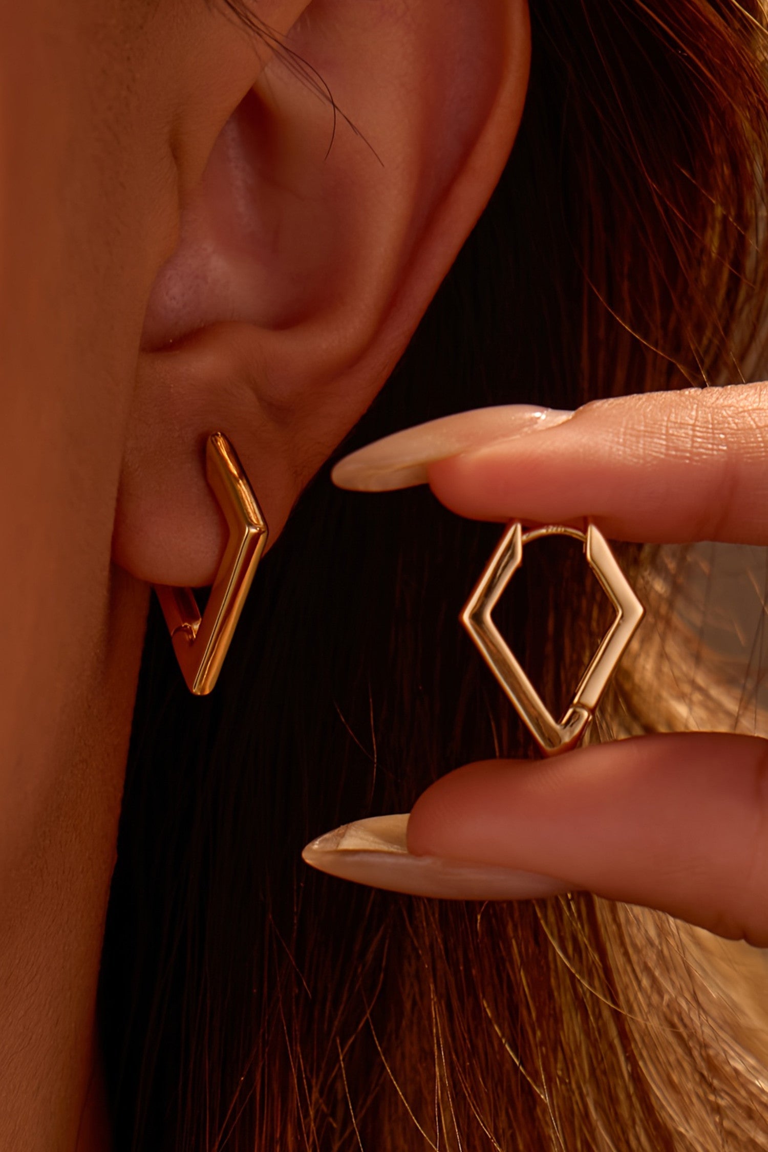 Elevate your accessory game with these stunning gold rhombus hoop earrings. Crafted from quality alloy with a lustrous gold-plated finish, these minimalist beauties deliver timeless sophistication in a chic geometric shape. Whether you're dressing up for a special occasion or adding polish to your everyday look, these versatile earrings strike the perfect balance between understated elegance and eye-catching style. A must-have addition to any jewelry collection.