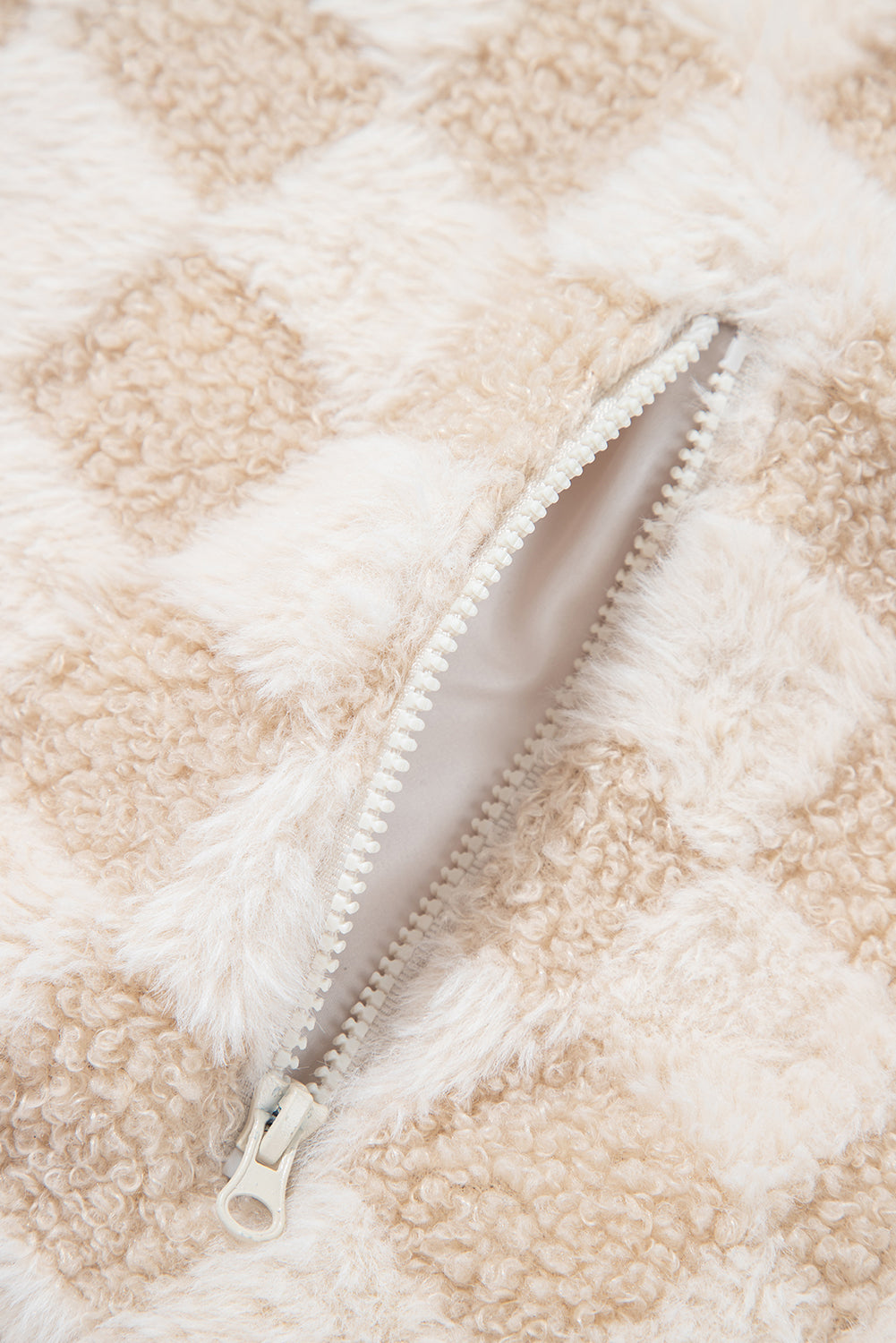 Experience warmth and style with the Khaki Sherpa Corduroy Jacket September. Featuring a trendy checker pattern and rich corduroy accents, this jacket combines fashion with function. The zip-up front and convenient pockets offer practical comfort, making it perfect for layering on cooler days. Stay cozy and confident wherever you go.